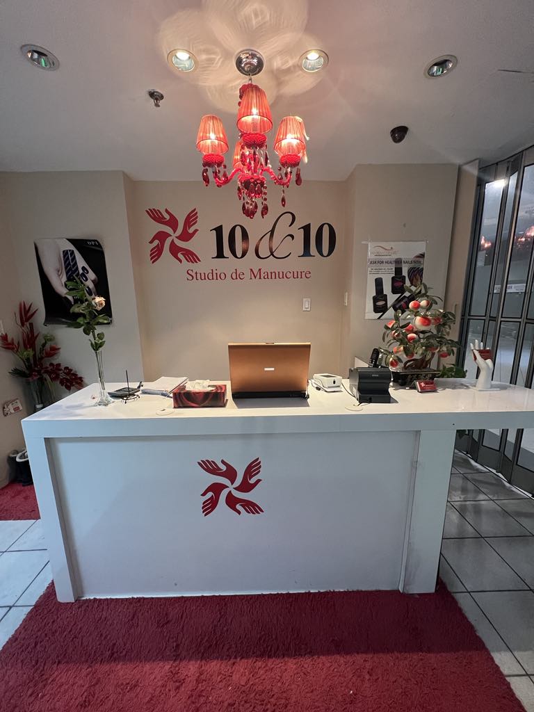 Bienvenue à Studio de Manucure 10&10! Votre confort et votre beauté sont importants pour nous. Venez, détendez-vous et laissez notre équipe qualifiée prendre soin de vos ongles. Que vous ayez besoin d'un changement de vernis rapide ou d'un soin spa complet, nous vous promettons une expérience agréable. Découvrez de beaux ongles et un esprit rafraîchi au Studio de Manucure 10&10!
